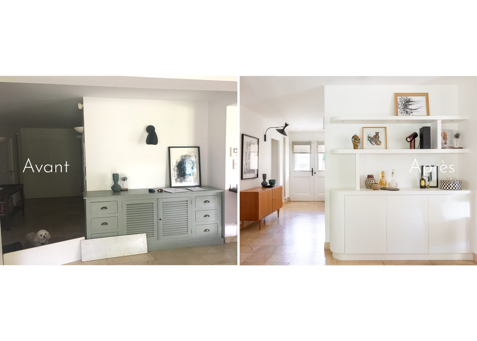- réalisation d’une bibliothèque sur mesure (bibliothèque-buffet et bibliothèque-meuble TV)