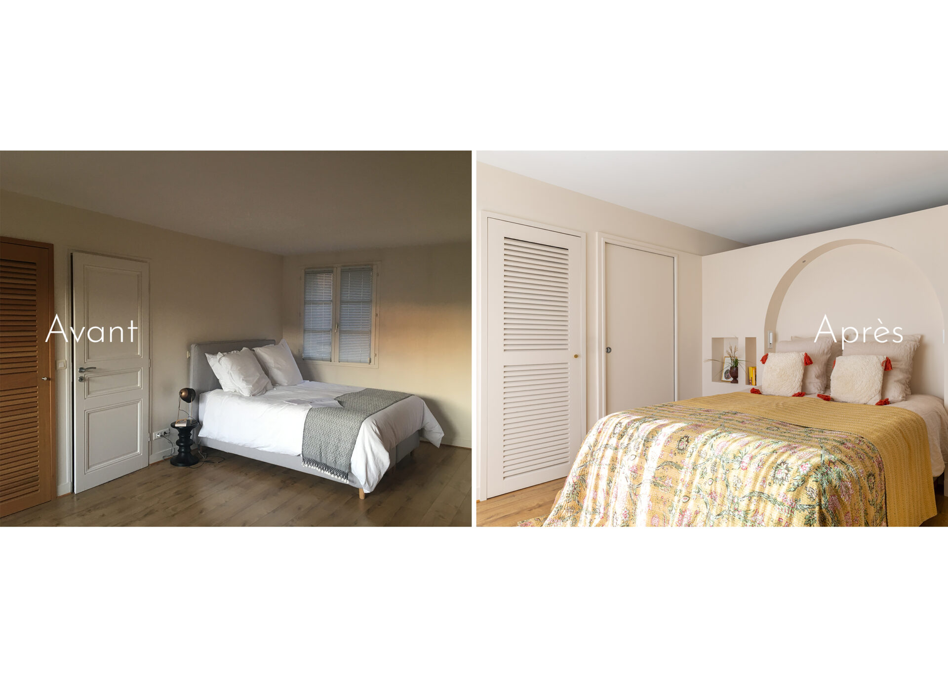 - réalisation d’un module tête de lit maçonné, rafraîchissement des peintures